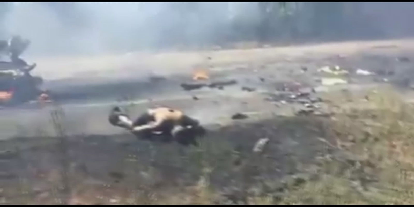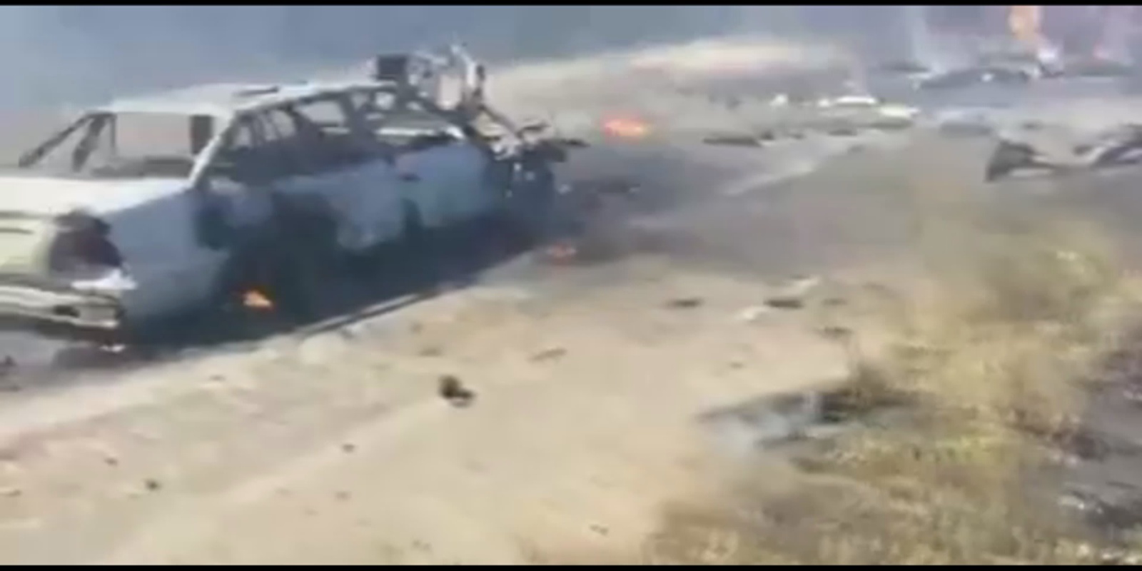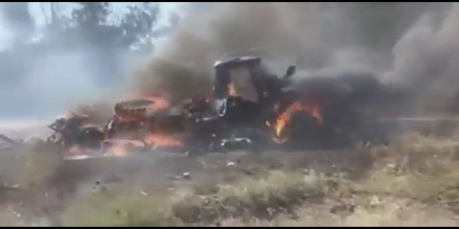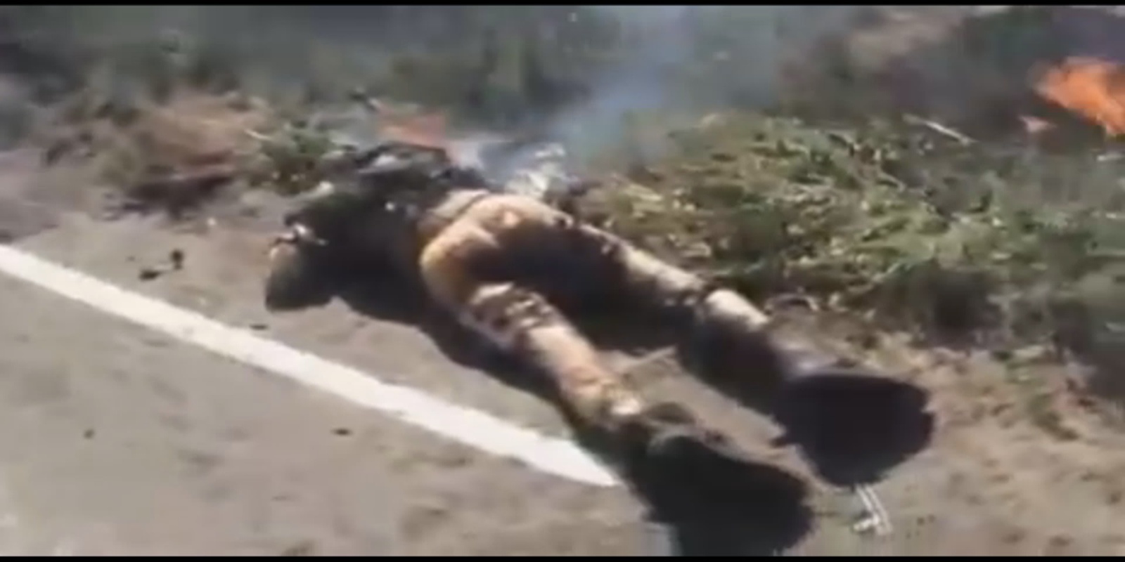 Pelo que se depreende, tratou-se de uma emboscada a um transporte de tropas. Este veículo que está a arder é nitidamente um camião militar. Há também pelo menos uma viatura, aparentemente civil, envolvida nesta situação.