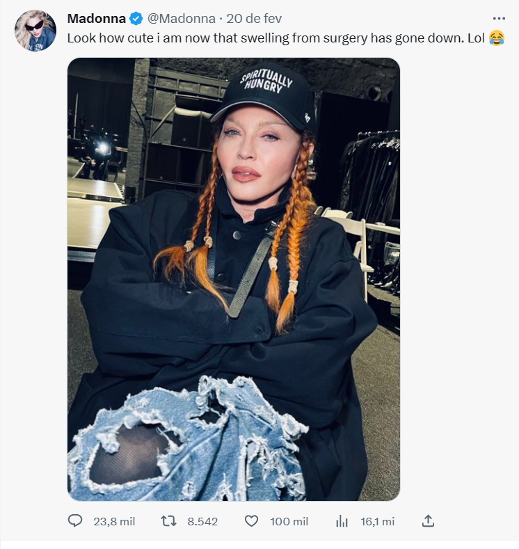 Agora, Madonna reapareceu nas redes sociais e comentou a sua própria fotografia: “Vejam como estou gira depois do inchaço da cirurgia ter desaparecido. Lol.” Como quem diz que ‘ri melhor quem ri por último’.