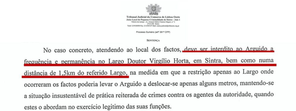 O tribunal também não considerou legitimo que Ildefonso quisesse lutar por esse direito, resistindo à Polícia Municipal. O tribunal preferiu dar como provadas as alegações de um agente policial que disse ter sido mordido por Ildefonso, mesmo se nenhuma testemunha tenha declarado ter visto essa agressão. O manifestante sai condenado por uma dentada que nega ter sido feita por ele e fica proibido de continuar o protesto naquele lugar. Pior que isso, a proibição de não se aproximar a menos de 1,5 km do largo Virgílio Horta “equivale a não poder entrar em Sintra”, disse-nos Manuel Ildefonso, pelo que vai recorrer da sentença.