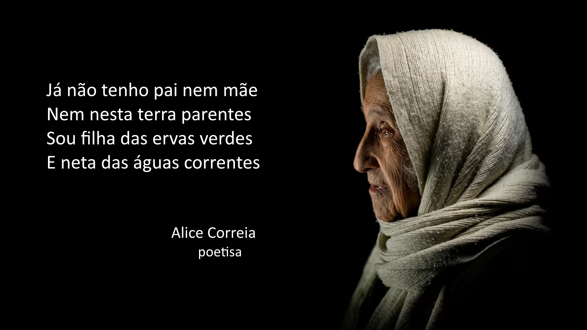 Estes são alguns dos versos que Alice Correia me foi dizendo, quando a memória não a atraiçoava. E quando tal lhe acontecia, lamentava-se: “Eu tenho um problema, falta-me a memória. Mas vou estudar e esgravatar para amanhã poder contar”. E assim era.