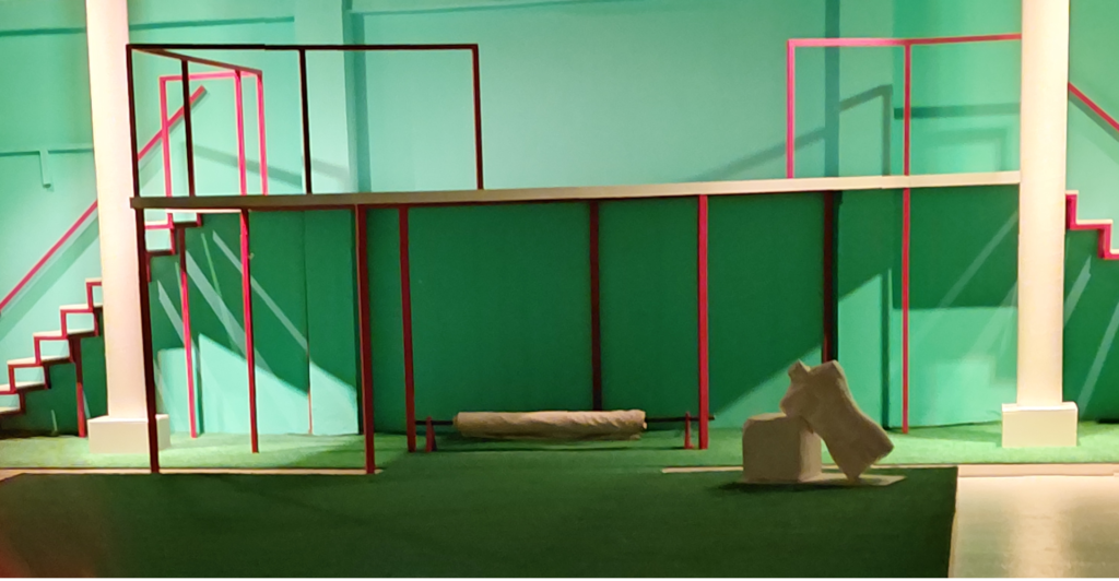 Sim, as interpretações espantam-nos; mas se já estávamos habituados a que, de vez em quando, os lugares reservados aos espectadores não eram os expectáveis, desta feita, todo o espaço se alterou por completo, de forma a melhor se conseguir dar ao público a ilusão de ser mesmo interveniente, estar por dentro daquilo, porque, dum momento para o outro, o actor pode saltar de trás de si ou passear-se-lhe pela frente. Louvor maior para o desenho e operação de som, a cargo de Hugo Neves Reis. Parabéns!