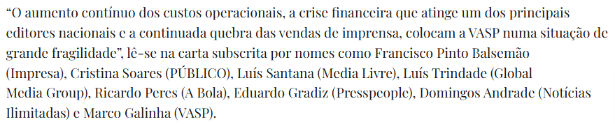Perante este cenário, os diretores dos jornais e revistas que ainda insistem em imprimir, alguns até fazem notícias, divulgaram agora uma carta conjunta, a que chamaram “manifesto“.