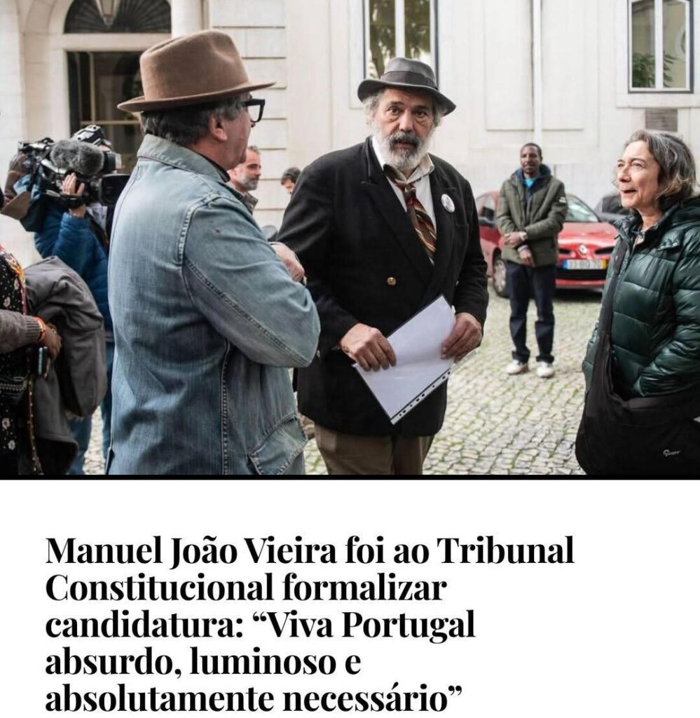 Manuel João Vieira apresentou 12.500 assinaturas no Tribunal Constitucional. Não é a primeira vez que ensaia a candidatura presidencial, mas é a primeira vez que a leva até ao papel carimbado. E fá-lo com aquele misto de provocação estética e descontracção estudada que o país já conhece — gravata torta, cabelo desalinhado e um humor que tanto desconcerta como irrita quem prefere a liturgia da política como coisa séria, grave e sisuda.