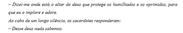Entrou no templo e olhou devagar os seus altares. Um deles era dedicado ao deus dos poderosos, outro à deusa da terra fértil, outro ainda ao deus da sabedoria.