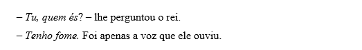 Manda o rei procurá-lo, dando aos guardas os sinais do ”homem jovem e magro vestido de farrapos”. Mas os guardas voltaram dizendo ao rei que eram sem conto os homens como aquele que o rei descrevia. E só então aquele rei desceu ao chão onde vivia o seu povo e viu a multidão de esfomeados.
