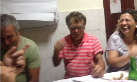O bom humor do Senhor Joaquim sempre a funcionar. Basta verificar o riso aberto do casal que o ladeia. A Amélia e o João. O fotógrafo não é grande coisa, mas ilustra a cena a contento…