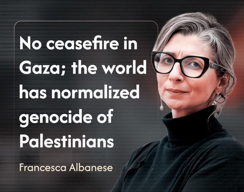 Francesca Albanese recusa a linguagem eufemística que tem servido para anestesiar consciências. Não fala em “excessos”, fala em genocídio. E fá-lo apoiada em relatórios, números, padrões de conduta e declarações públicas de responsáveis israelitas que configuram uma campanha deliberada de destruição de um povo, a morte de todo um povo, o aniquilamento dos palestinianos, uma espécie de “solução final” para o que tem atrapalhado a concretização do chamado Grande Israel..