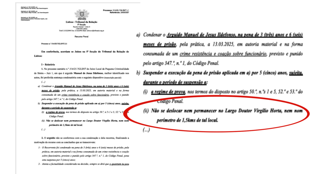 Sete anos depois, a resposta do Estado não foi uma casa, foi uma condenação penal e uma ordem: não pode aproximar-se num raio de 1,5 quilómetros da Câmara Municipal. Formalmente, tudo parece encaixar nos códigos. Houve resistência à autoridade. Houve o que consideraram ter sido desobediência. Houve confrontos (nunca iniciados por Ildefonso). A lei prevê consequências, está tudo escrito. O tribunal aplicou-as.
