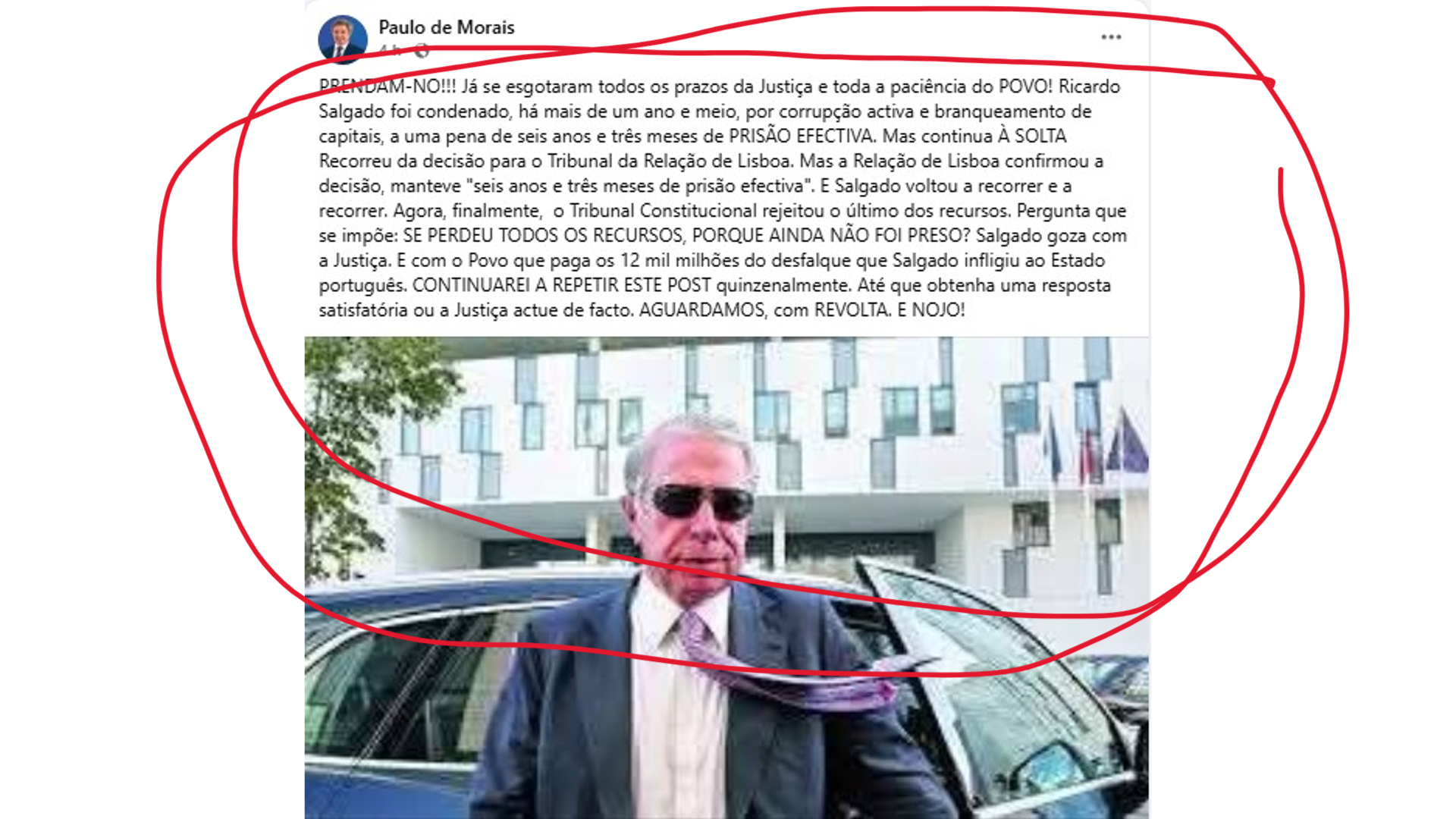 Mas, a verdade é que o tempo passa e Ricardo Salgado continua no conforto da sua casa, acompanhado pela família e criadagem. Sem novidade, reconfirmamos que há uma justiça para ricos e outra para nós.