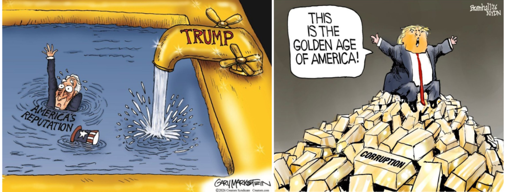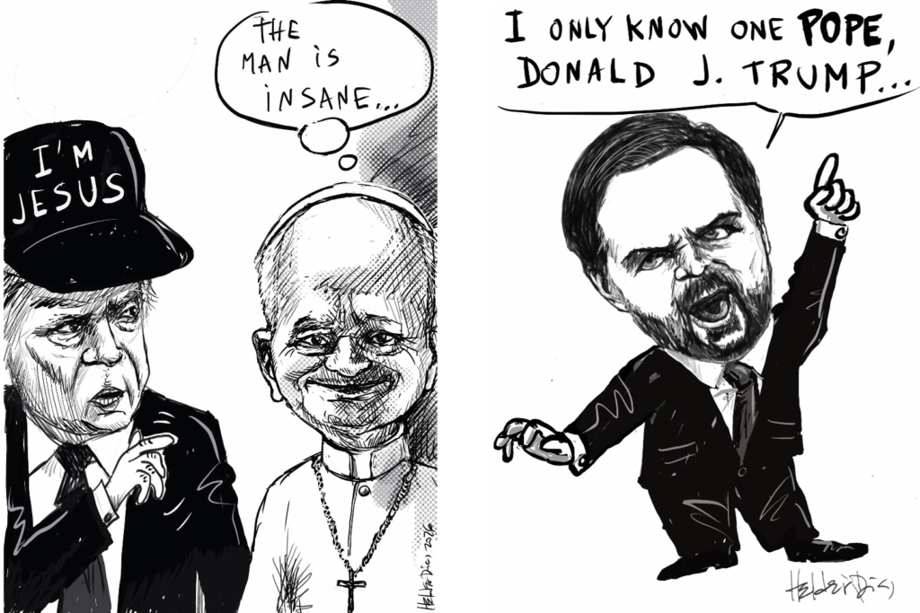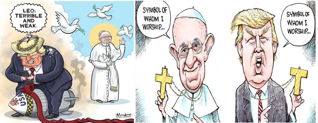 O ataque ao Papa teve um efeito colateral previsível: abriu a época do cartoon caricatura de Trump. De repente, jornais e plataformas digitais encheram-se de caricaturas onde Trump surge como pateta, nunca esquecendo que estamos a falar de um pateta perigoso. A sátira política, que vive de exagerar o real, tem aqui a vida facilitada. Basta copiar.